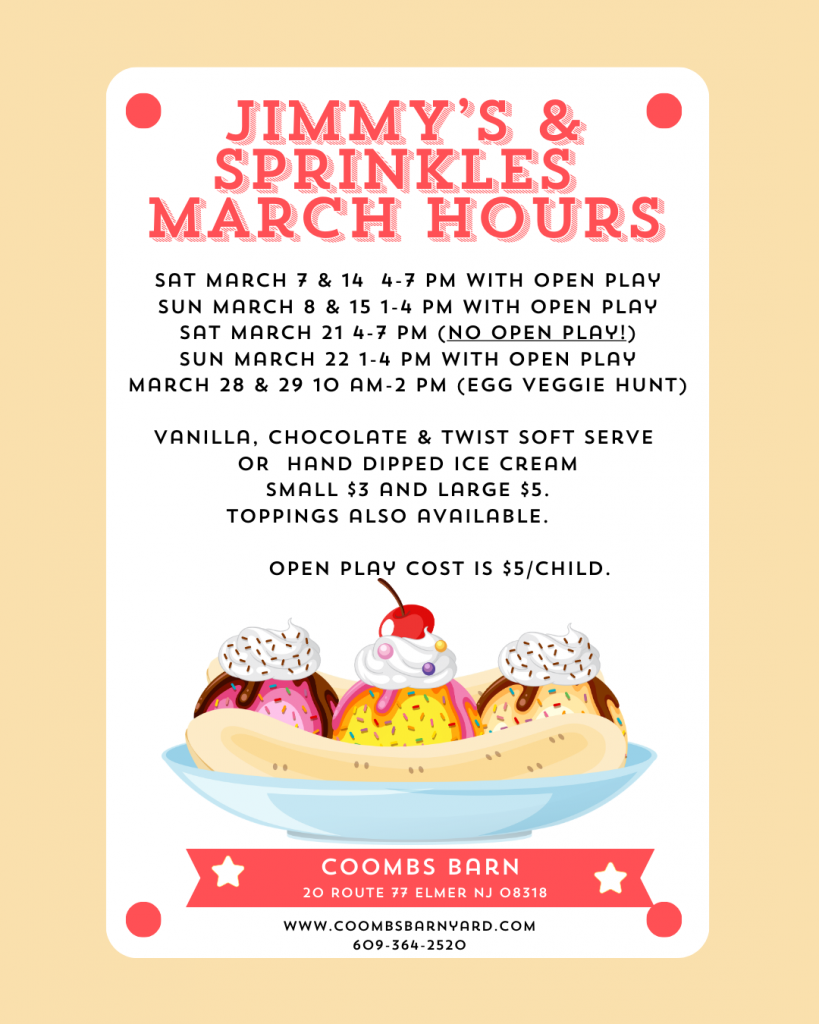 March Dates – Jimmy’s & Sprinkles with OPEN BARn PLay** ($5/child)